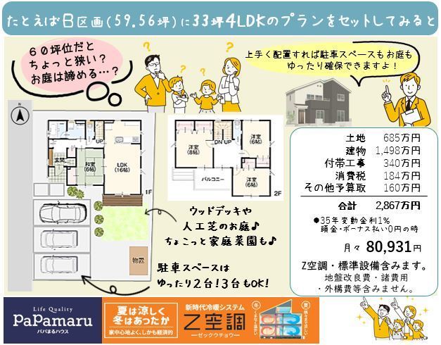 *建築条件に付いて…土地売買契約後3か月以内にブリスライフと、パパまるハウス建物建築請負契約を締結することを条件に販売します。