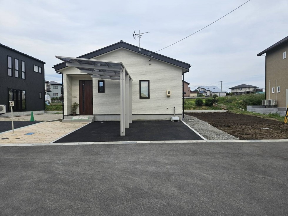 外構エクステリア工事 after カーポート:YKKapエフルージュFIRST 1台用 熱線吸収ポリカーボネート 透水性インターロッキング:SIBCアエリア <植栽・畑用に土を入替ました>