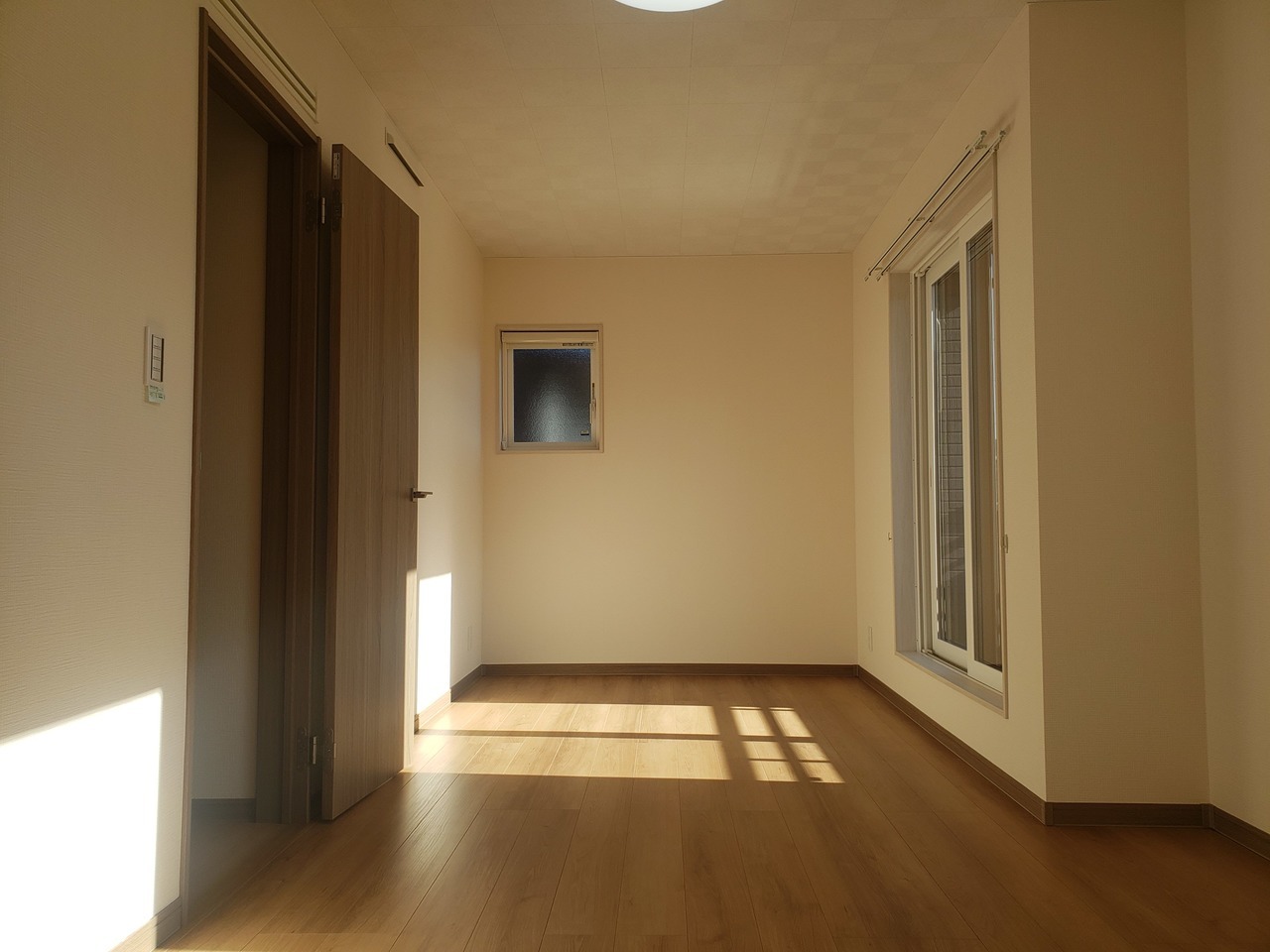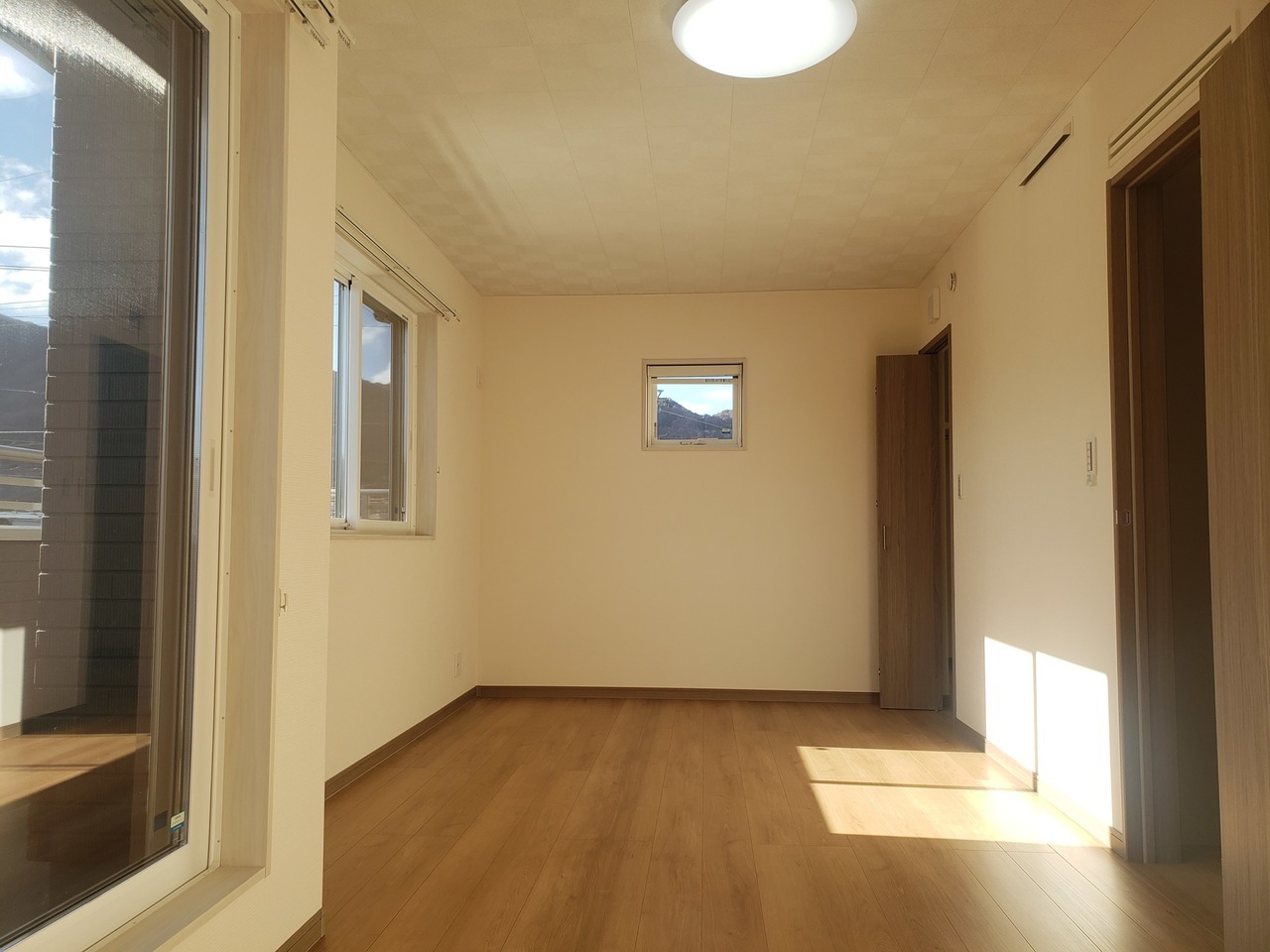 寝室:東側 床:ナチュラルオーク サッシ枠:ホワイト 建具:グレージュ