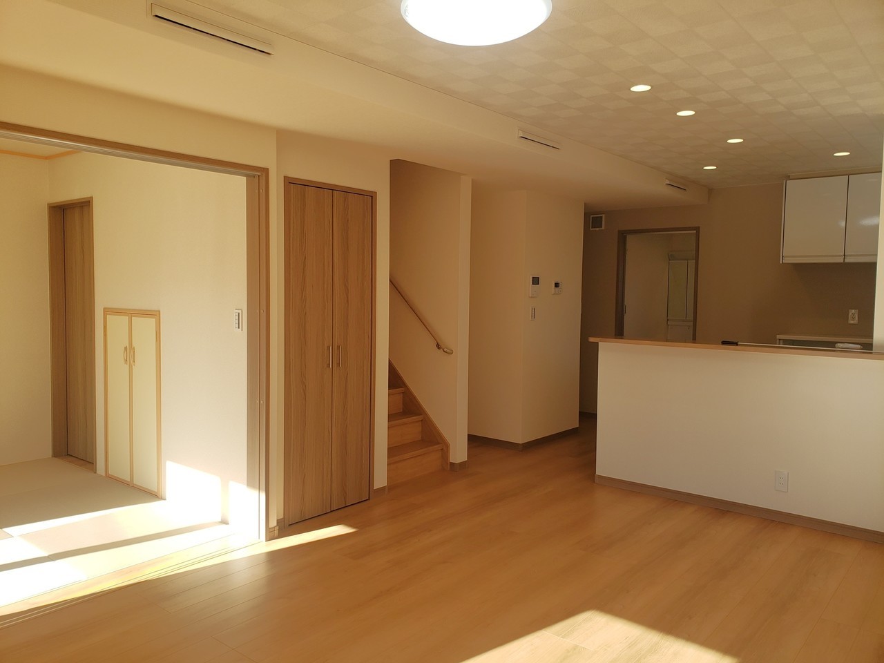 LD 床:EIDAIアトムフィットGM<ナチュラルオーク> 階段:ナチュラルオーク 建具:ウッドワン<グレージュ>