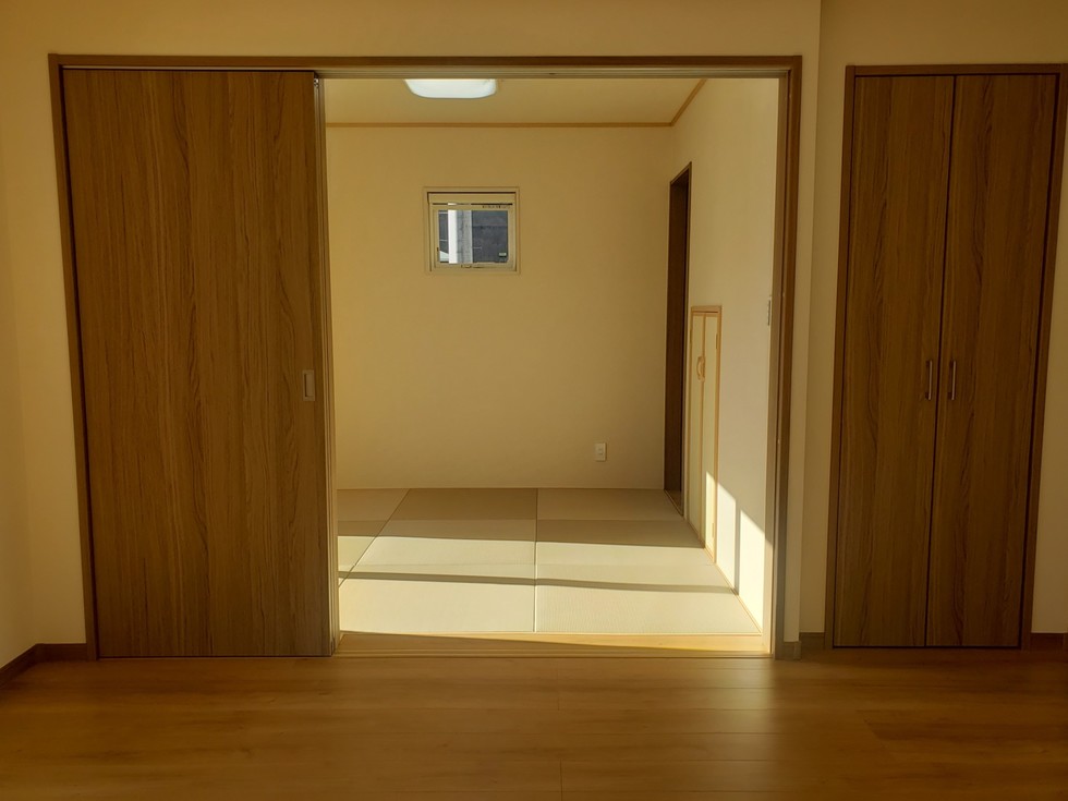 和室 畳:半畳縁無し(和紙)灰桜色 壁:シンコールSLP270 天井:クリアトーン 建具:ウッドワン