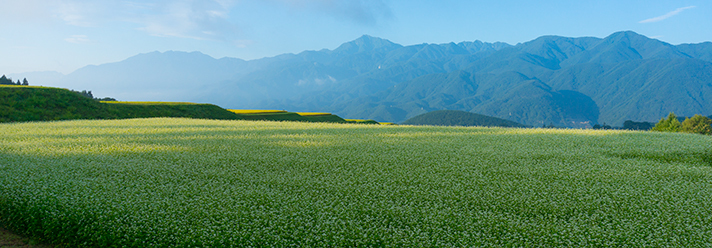 東京から電車で2時間ほど、日本のほぼ真ん中にある長野県で、そのほぼ真ん中にあるのが茅野市を含めた諏訪地方です。茅野市は八ヶ岳の西側の裾野に広がり、高い山々に囲まれた諏訪盆地の一角にあります。人々の暮らす里山が広がる一方、八ヶ岳登山の玄関口でもあり、蓼科や白樺湖、車山といった高原を有するリゾート地でもあります。