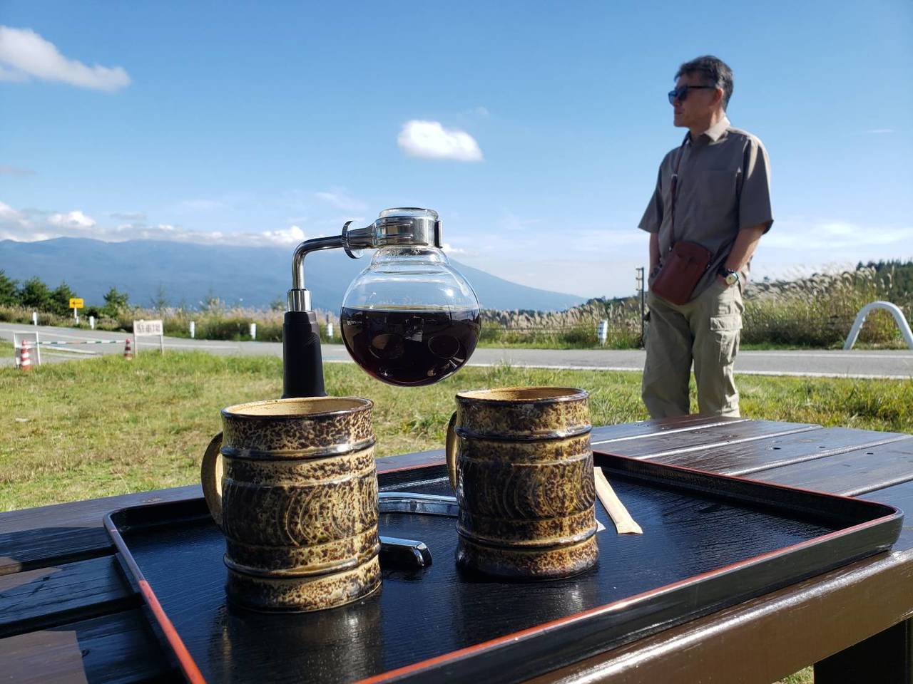 大自然の中でいただくソフトクリームとサイフォンで淹れてくれたコーヒーは最高でした。